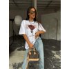 Oversize tričko od značky La Manuel vyrobené z čistej bavlny. Model má lodičkový výstrih, krátke rukávy, sweet potlač a voľný, dlhší strih.
