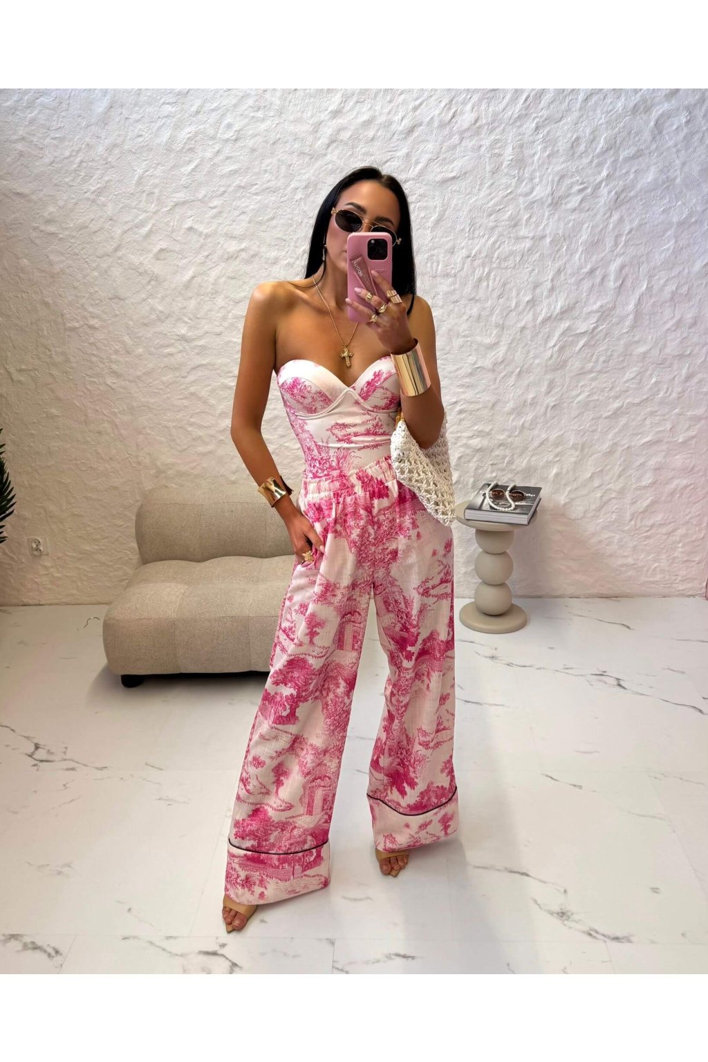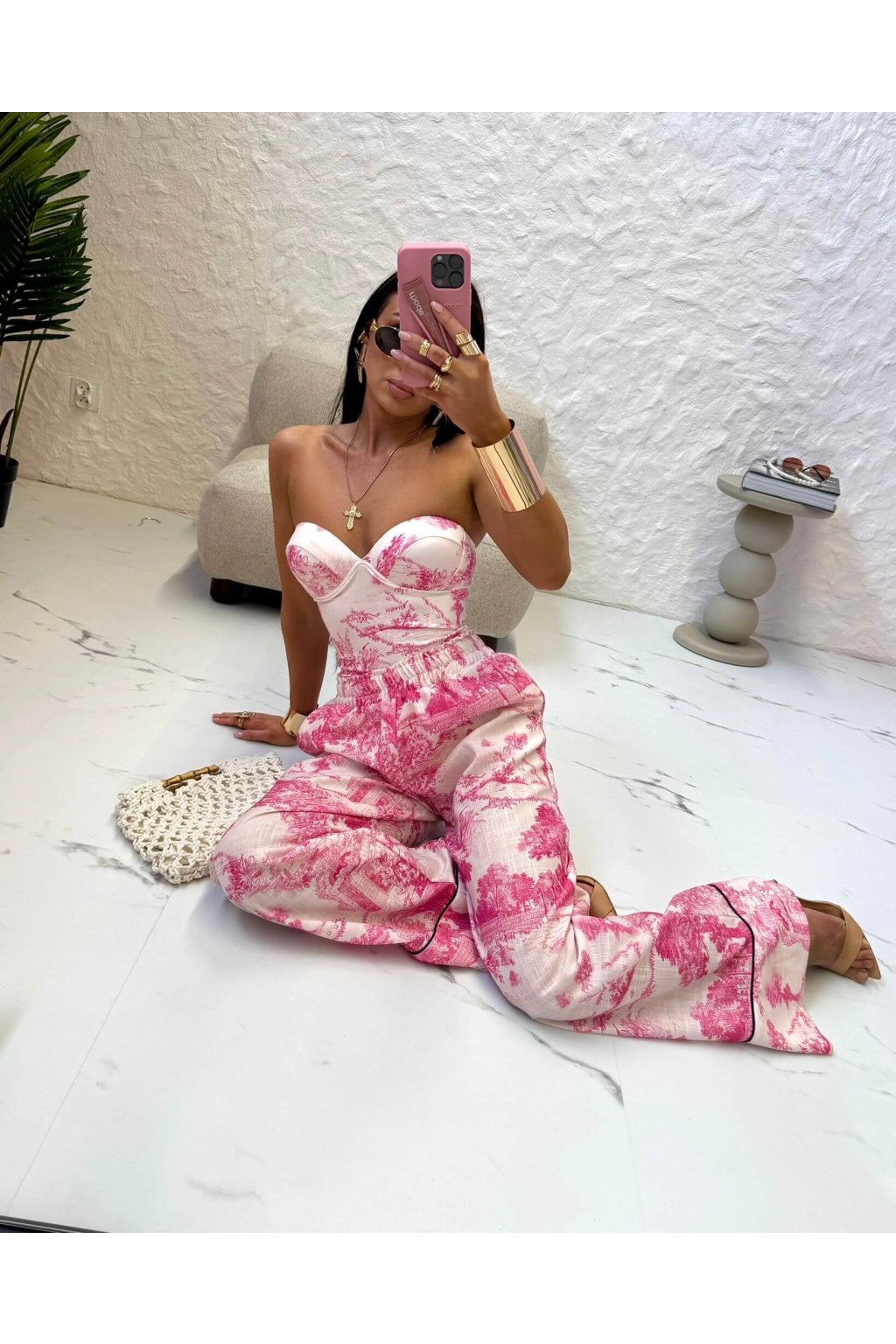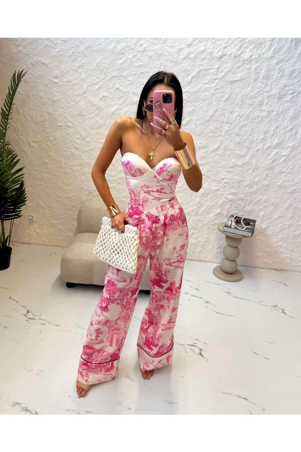 Body/plavky TREAT ME je vyrobené z pružného materiálu, ktorý je hladký a kĺzavý. Model je vo vzore inšpirovaným ikonickou značkou Dior. Charakteristickým prvkom tohto vzoru sú stromy - krajina, vďaka ktorému pôsobia plavky elegantne, luxusne a nadčasovo. Ružovo biela farebná kombinácia je typická pre jeho klasický dizajn.