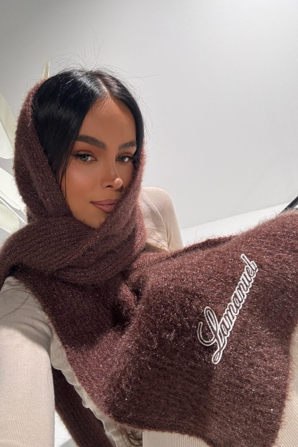 Chlpatý mohérový šál FLUFFY hnedý