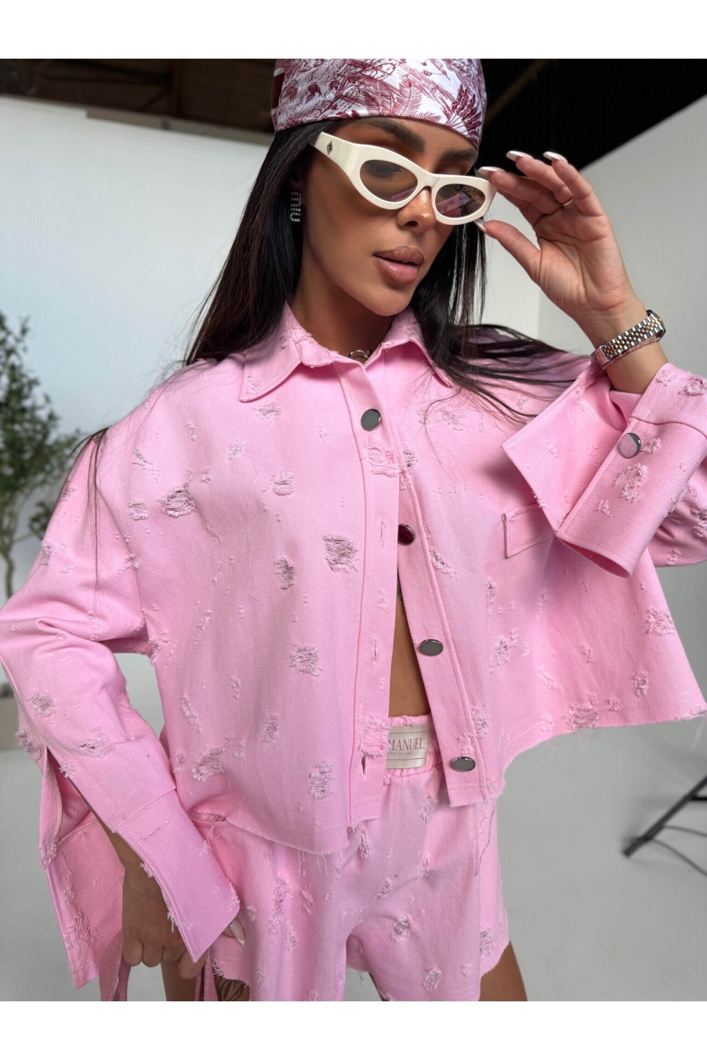 Bunda PERFECT COMBI je vyrobená zo 100% bavlny. Džínsový materiál s povrchom veľmi jemných vrúbkov, je mäkký a príjemný na dotyk. Opotrebovaný a zostarnutý vzhľad dodáva celku charakter. Model je v ružovej farbe.