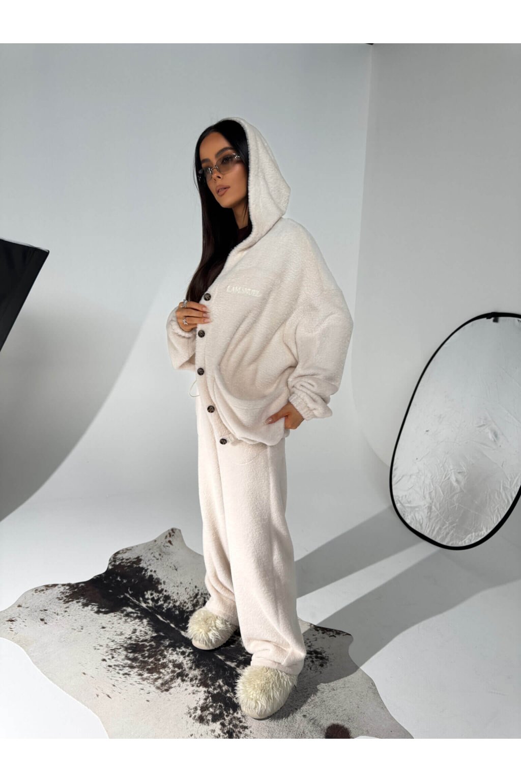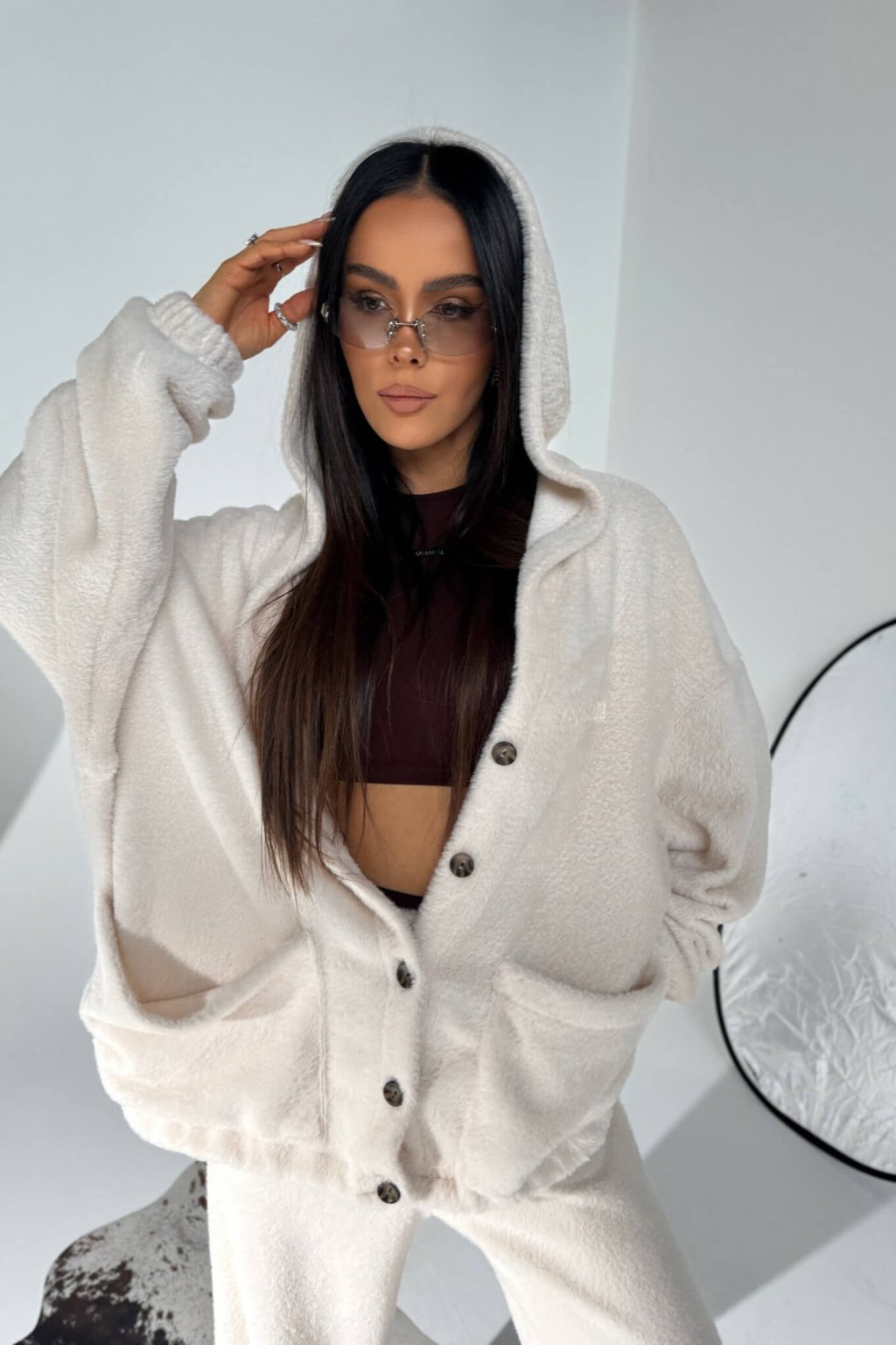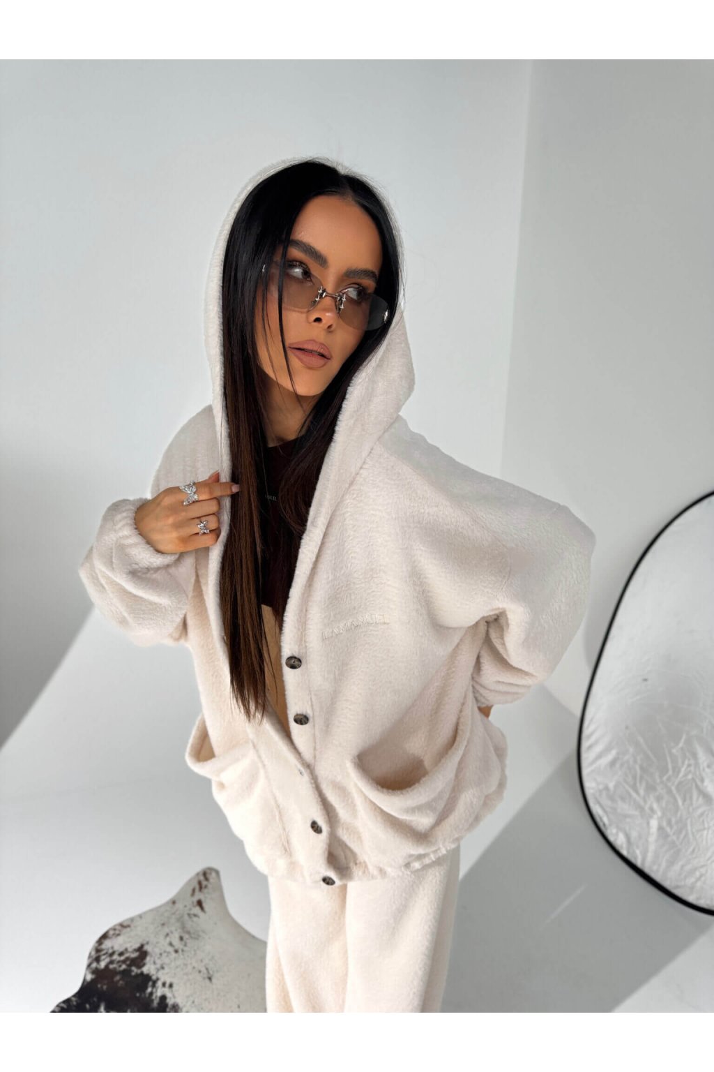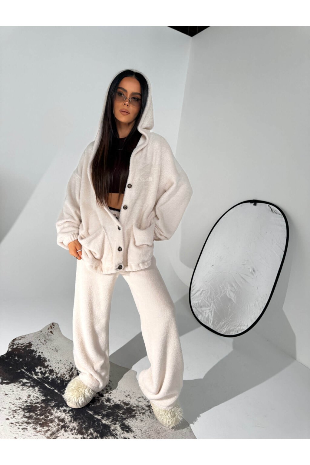 Plyšová mikina na gombíky HOTTIE biela
