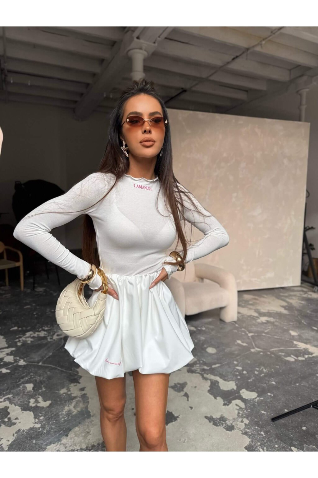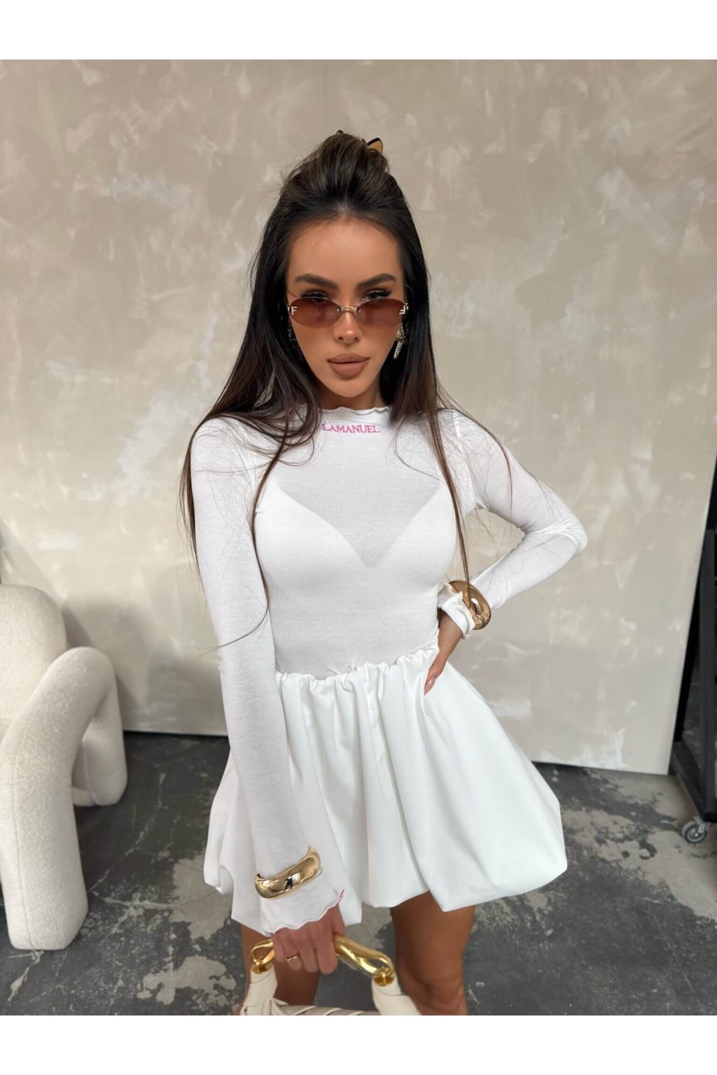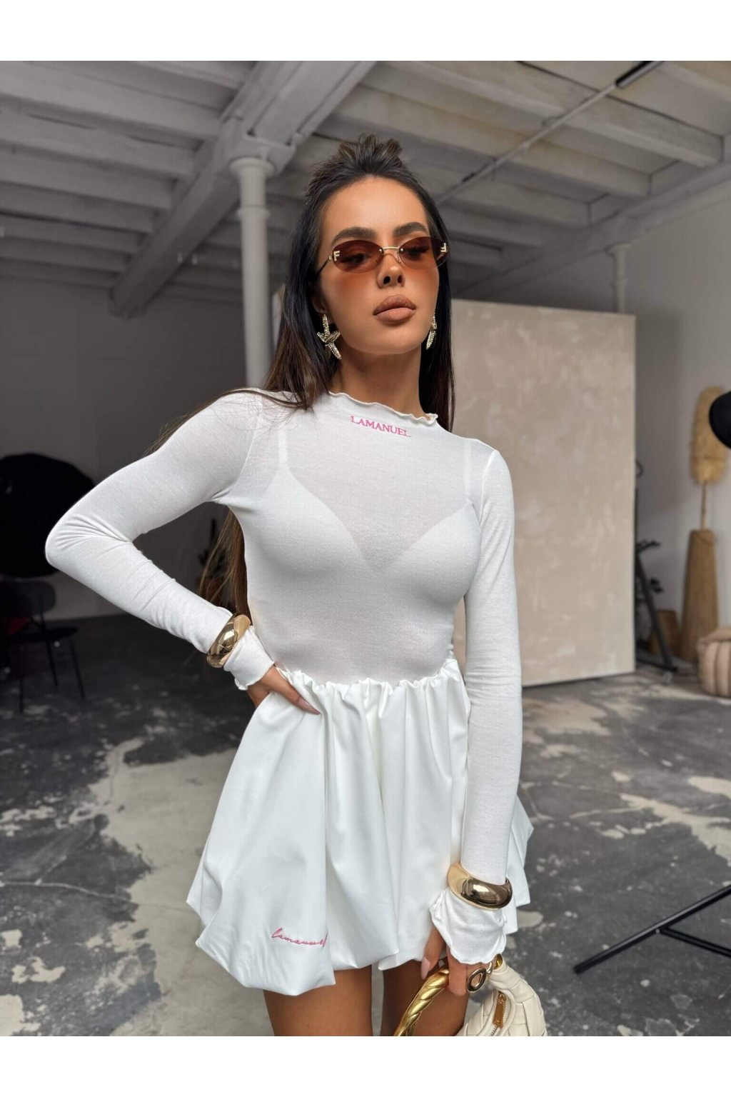 Je zaujímavý pre jeho minimalistické volániky vo výstrihu, na rukávoch a naspodku topu. Dodávajú jemný šarm. Dlhé rukávy na konci s miernym zvonom sú štýlovým prvkom, ktorý pôsobí elegantným vzhľadom. Top je klasickej dĺžky a zdobí ho farebná výšivka s logom výrobcu.