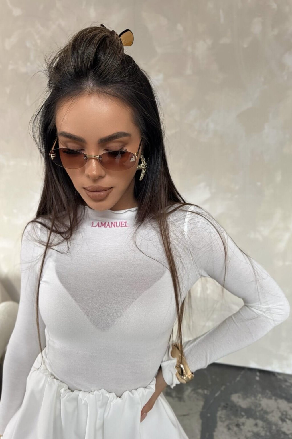 Top MOM’S GIRL od značky La Manuel je vyrobený z umelého hodvábu. Materiál je mäkký, priedušný a jemný na dotyk. Model je v čistej bielej farbe.