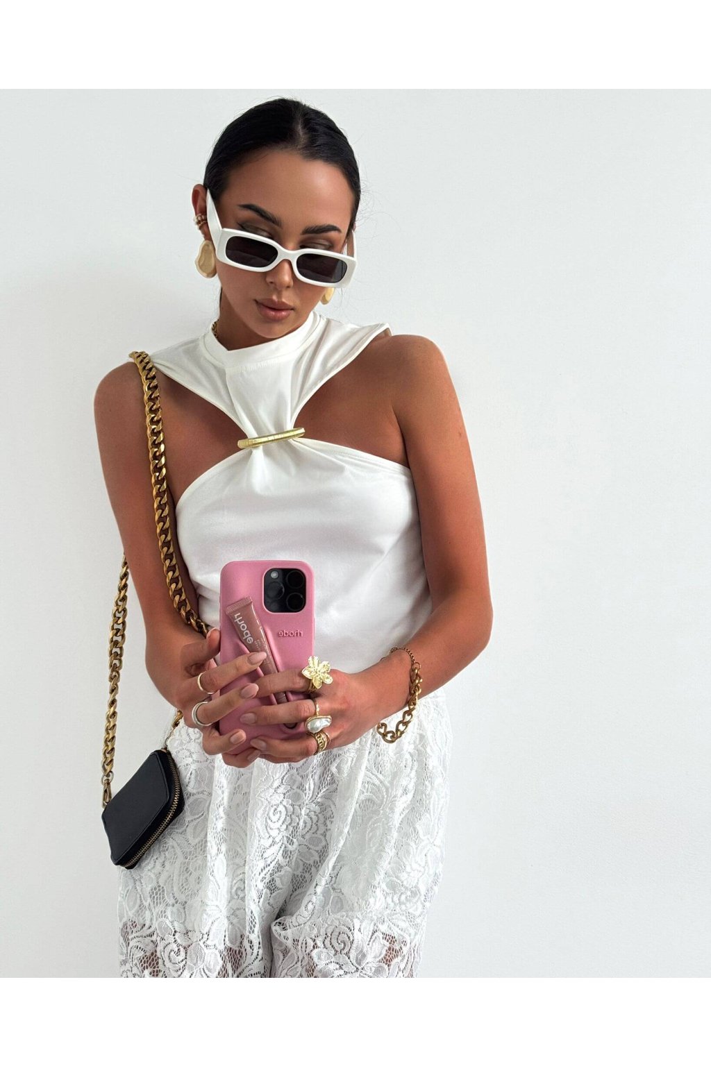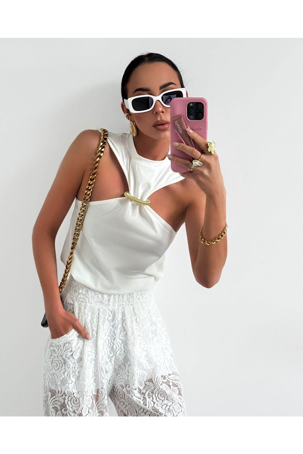 Nohavice AMIGOS sú vyrobené z transparentnej čipkovanej látky. Materiál je ľahký a vzdušný. Model je vo vzore kvetov, listov a jemných detailov. Kvetinové nohavice dodávajú outfitu ženský a romantický vzhľad. Čistá biela farba pôsobí elegantne a sofistikovane.